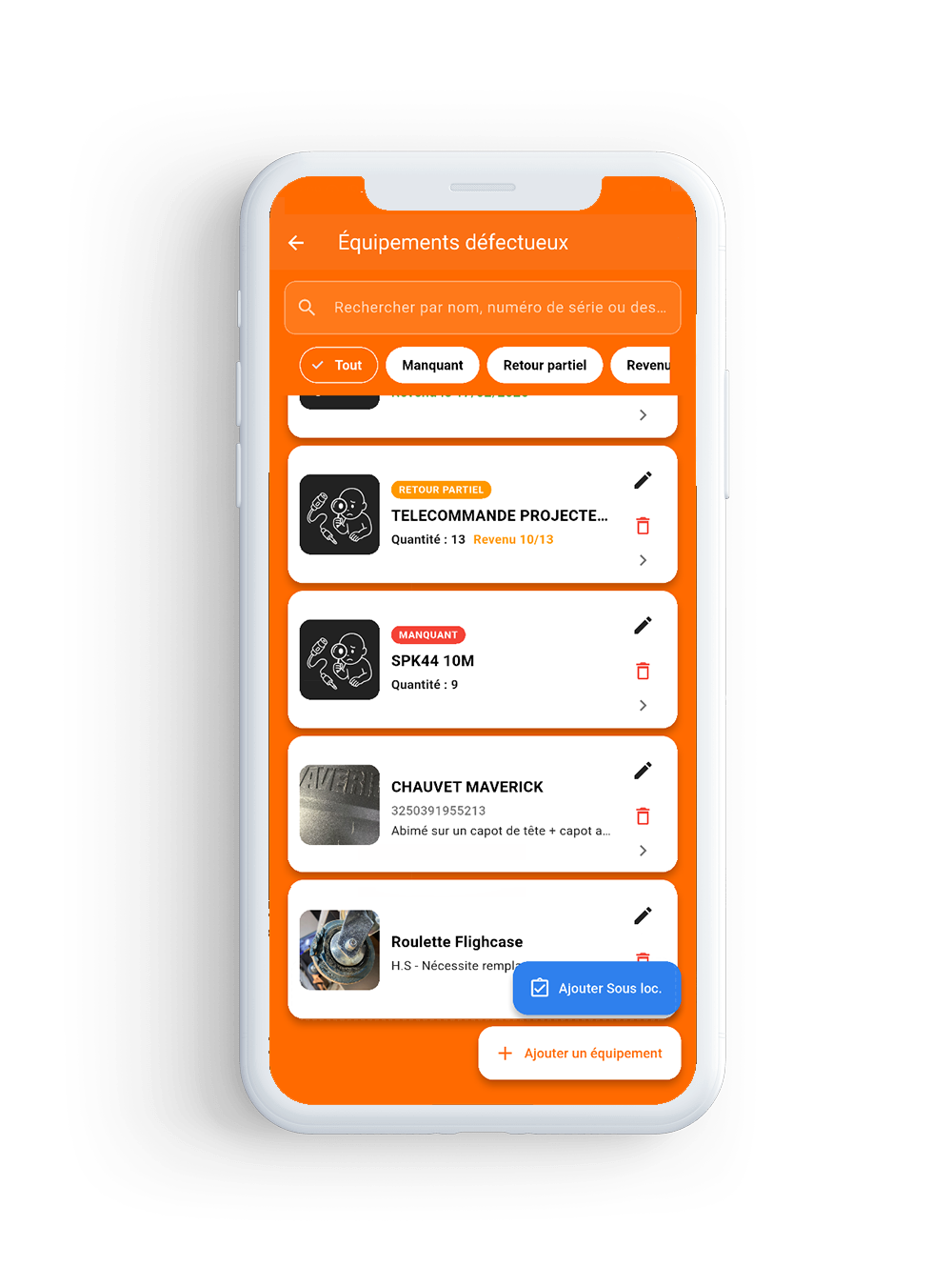 Visualisez les équipements manquants ou revenus.